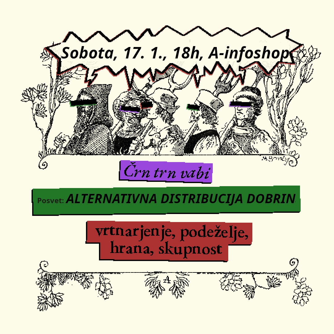 The consultation within the framework of Črni Trn - Radical Agrarian Association is being prepared by Zadruga Urbana - an urban-agrarian collective based on mutual aid, solidarity, and horizontal operation. After a beginning input and a short round of introductions, where we will exchange our experiences with alternative distribution so far, we will discuss possible visions and plans for the future. We will definitely stick to the principle: big ideas, small expectations.