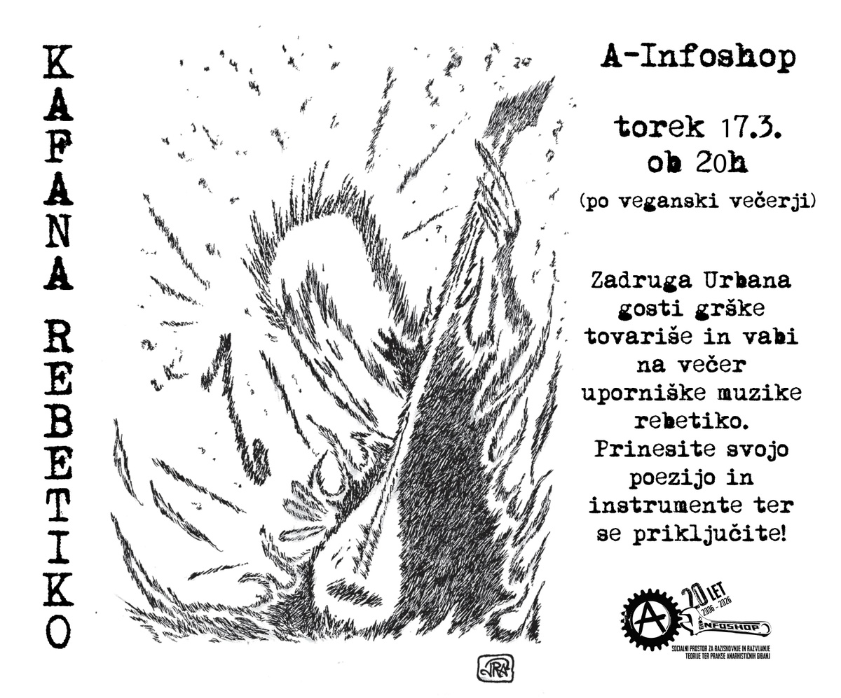 V sklopu 20. obletnice A-Infoshopa vabljeni v torek, 17.3. ob 20h (po veganski večerji) na Kafano Rebetiko!
