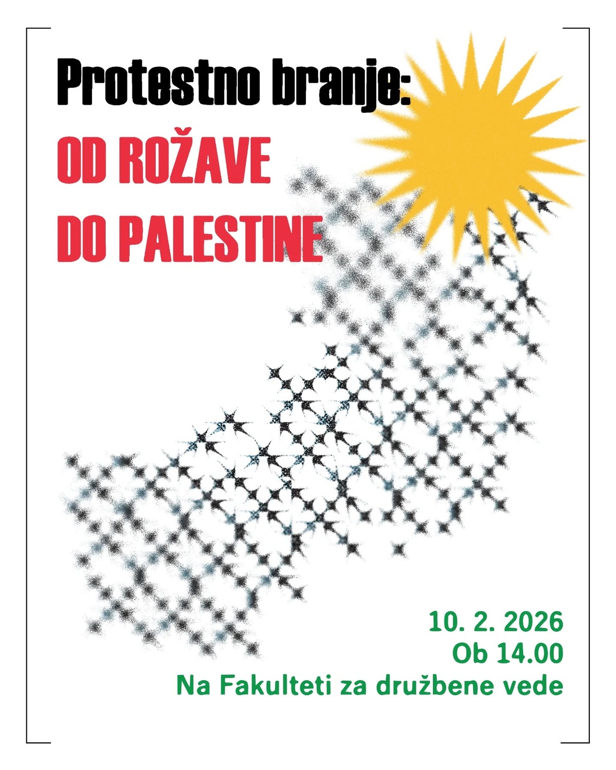 Protestno branje "Od Rožave do Palestine" na Fakulteti za družbene vede